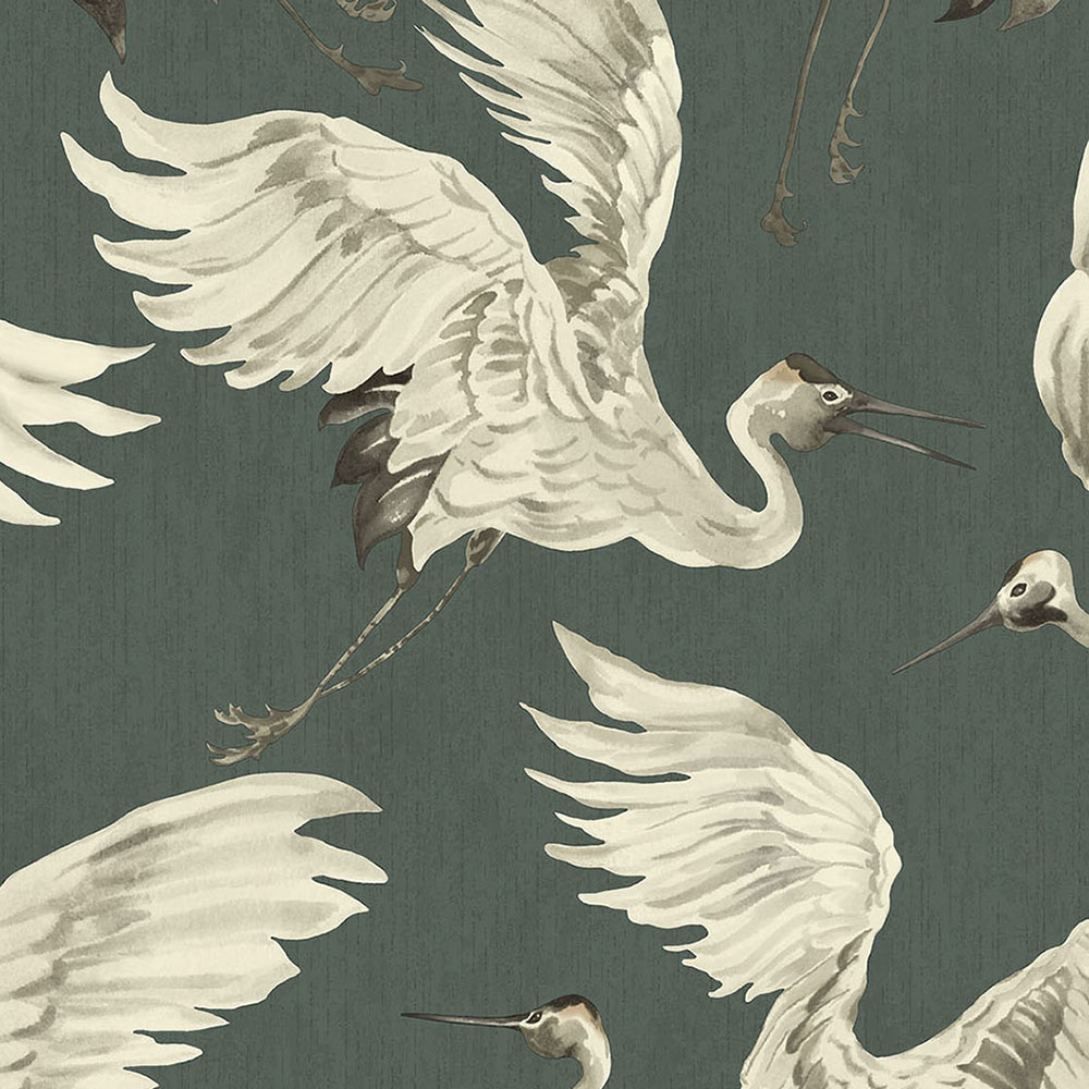 Non-woven green wallpaper flying birds 317355, Oasis, Eijffinger