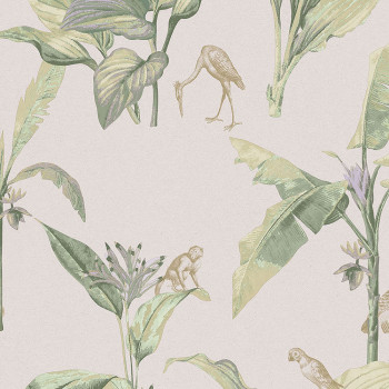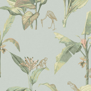 Non-woven wallpaper, palm leaves, birds, monkeys 317342, Oasis, Eijffinger
