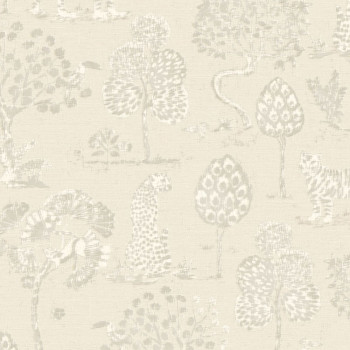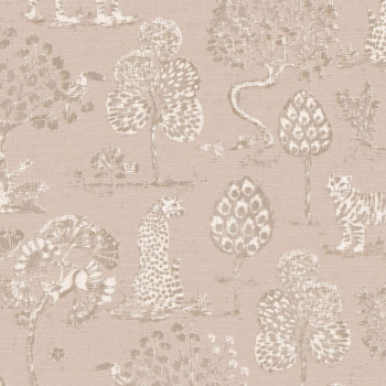 Brown-beige non-woven wallpaper with trees, tigers and leopards 317311, Oasis, Eijffinger