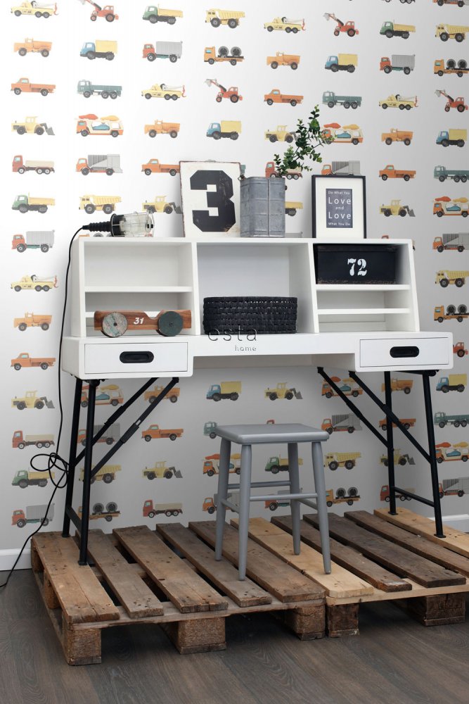 Non-woven wallpaper, wallpaper for boys with cars, excavators, trucks.