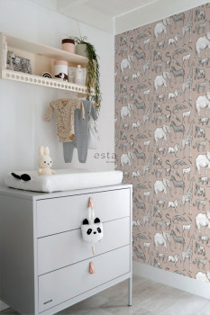 Old pink non-woven wallpaper Animals from Africa 139271, Forest Friends, Esta