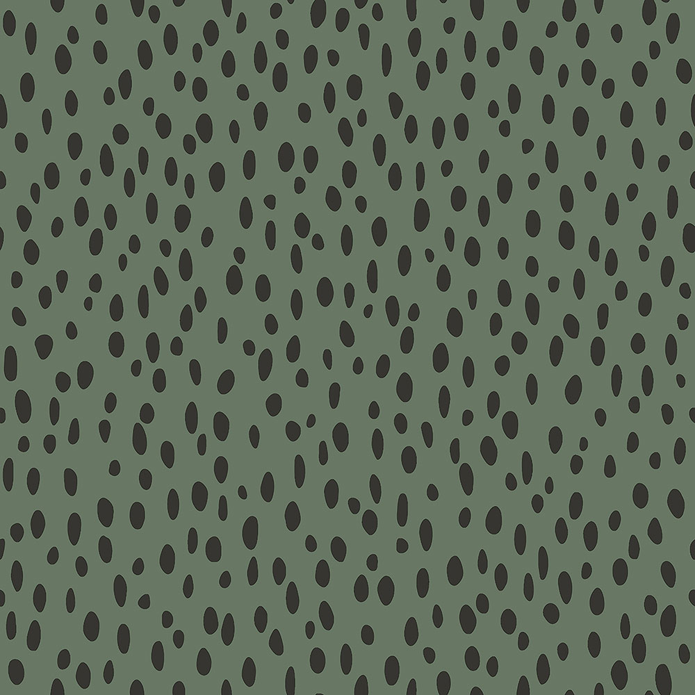 Green non-woven wallpaper with black irregular ovals 139258, Forest Friends, Esta