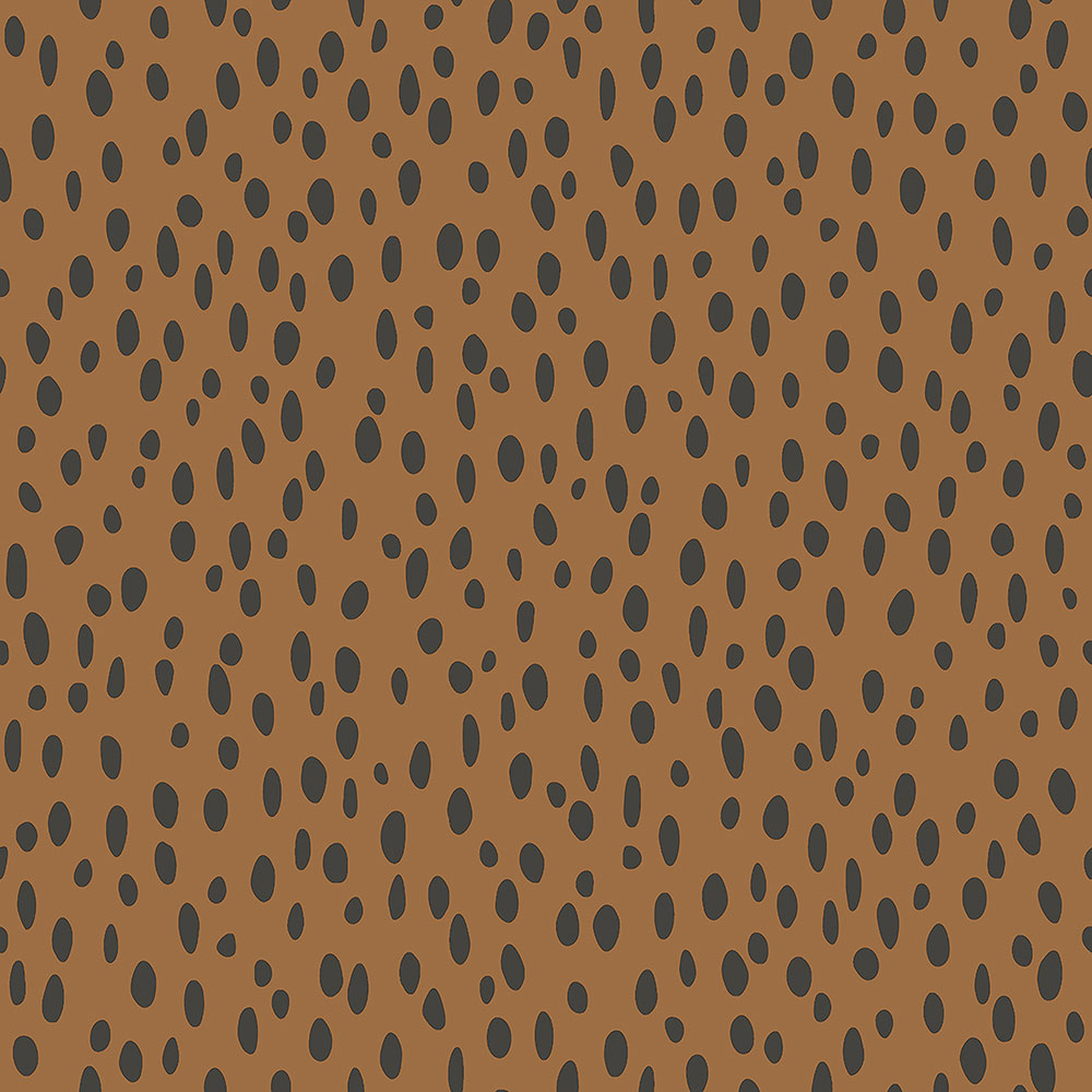 Honey brown non-woven wallpaper with irregular black ovals.
