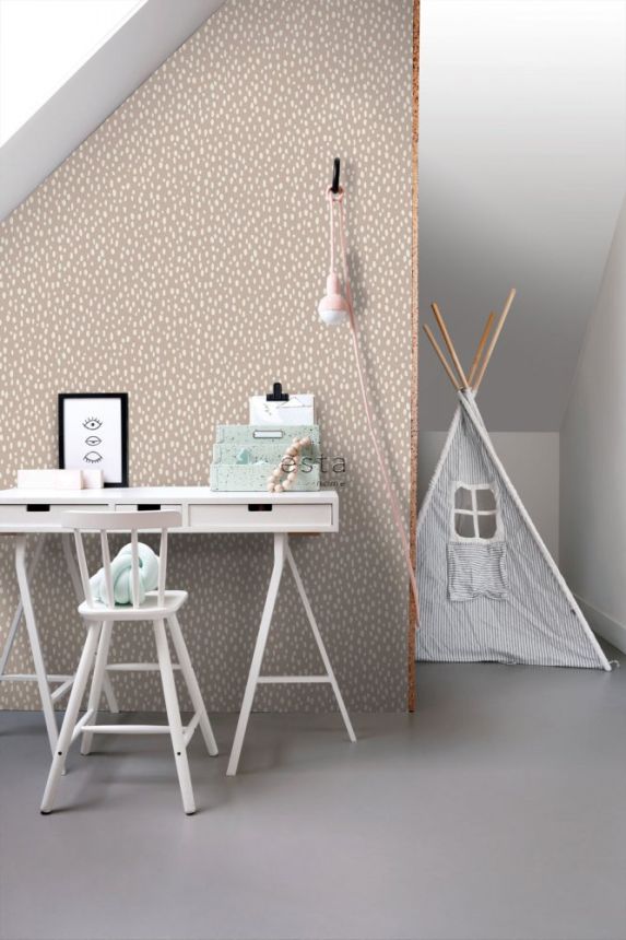 Brown non-woven wallpaper with white irregular ovals 139255, Forest Friends, Esta