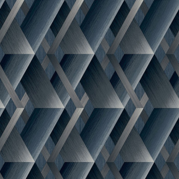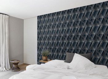 Non-woven geometric 3D wallpaper, wood imitation, shades of blue and gray.