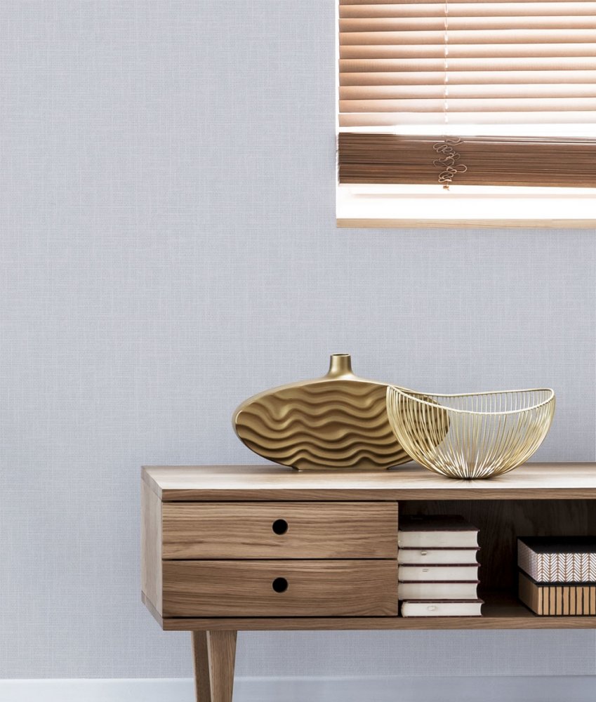 Gray finely textured wallpaper, coarser fabric design in shades of gray with subtle silver reflections.