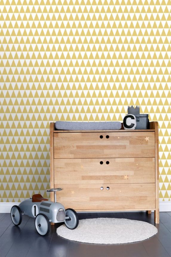 Non-woven wallpaper with ocher and white triangles 128863, Little Bandits, Esta