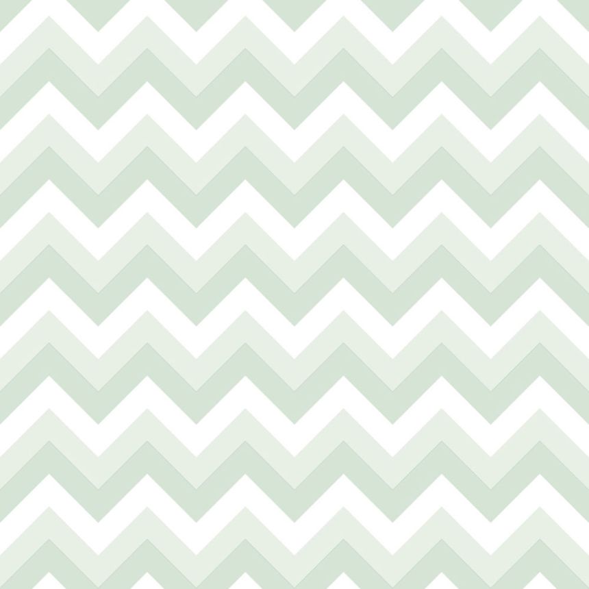 Green-white non-woven geometric pattern wallpaper, zig zag pattern.