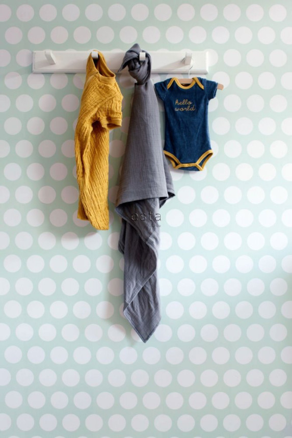 Non-woven green wallpaper with white polka dots 128711, Little Bandits, Esta
