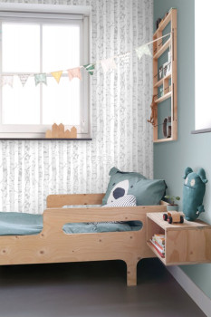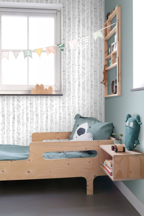 Gray and white non-woven wallpaper Trees 138944, Little Bandits, Esta