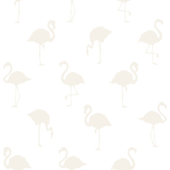 White non-woven wallpaper with pink flamingos 138918, Little Bandits, Esta