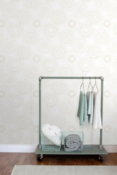 Metallic gray-white non-woven floral wallpaper 138910, Little Bandits, Esta