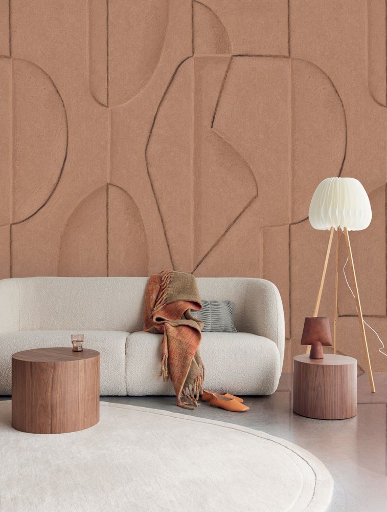 Wallpapers from the Artifact collection blend contemporary craftsmanship and honest materials into artistic shapes and motifs. A warm collection featuring natural, hand-processed materials. Revel in a subtle colour palette rich in natural hues, from linen, beige and camel to sage, earthy terra, taupe, khaki, indigo, forest green and new black. OEarthy undertones of pure loam, strong clay and raw jute, combined beautifully with sculptural shapes and fine graphic lines. Choose from abstract triangles and a geometric design on an elegant, glossy background. Or opt for gently wavy lines, full of depth, with a light gradient. And, completing the series, is a layered plain with a coarse tweed textile look. Also captivating are the Wallpowers with the optical depth of a clay relief, a gracefully meandering line on a roughly painted background and a striking multicoloured abstract motif.