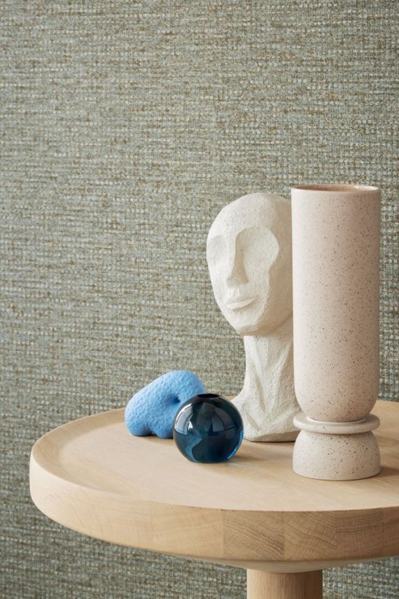 Luxury non-woven wallpaper in shades of green-khaki, gray with pearl luster.