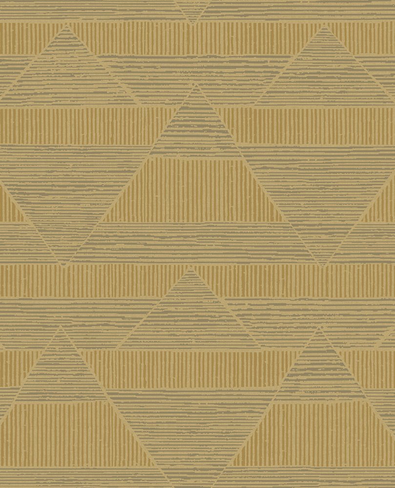 Luxury non-woven wallpaper in ocher shades with an elegant geometric pattern.