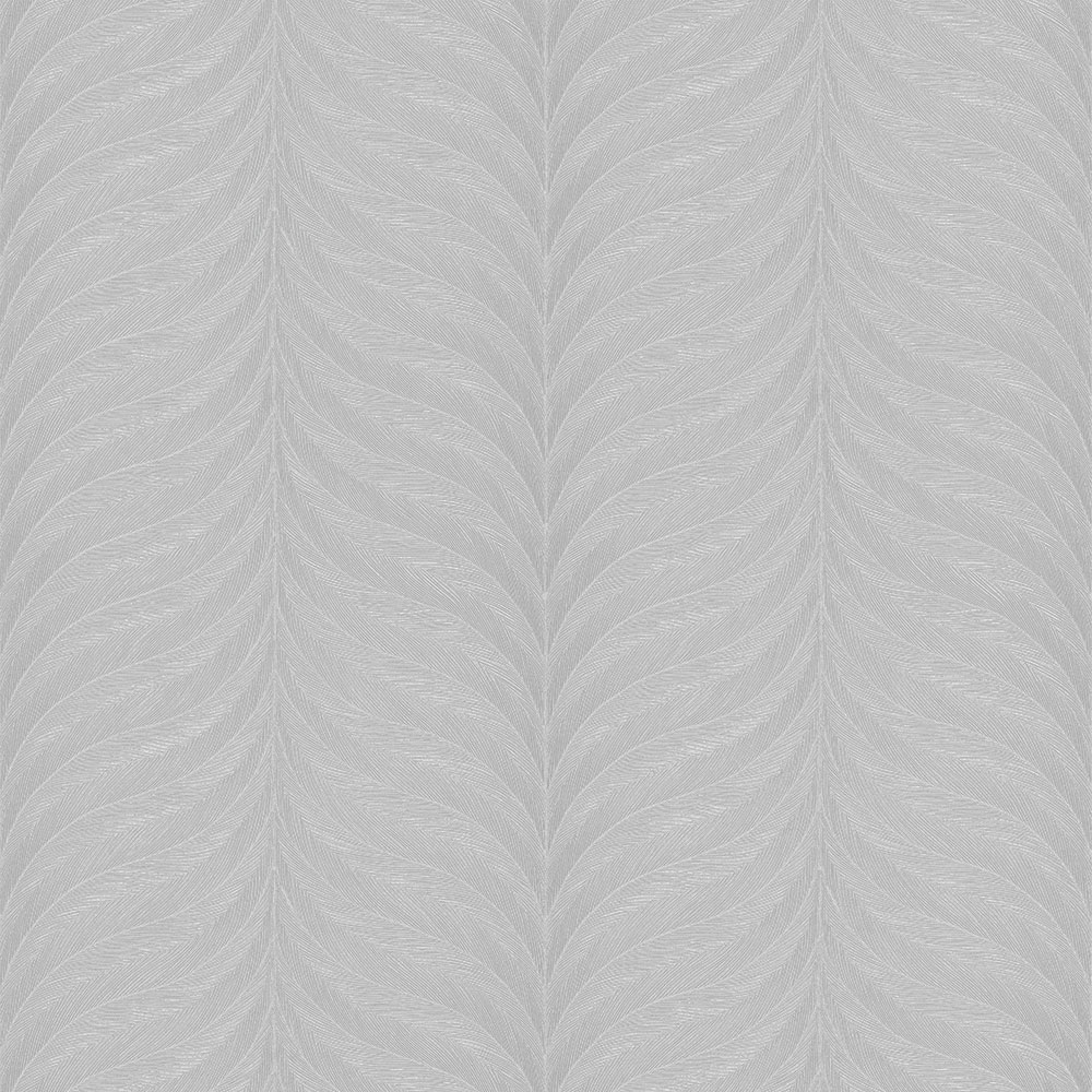 Silver non-woven wallpaper, feather graphic motif EE1306, Elementum, Grandeco