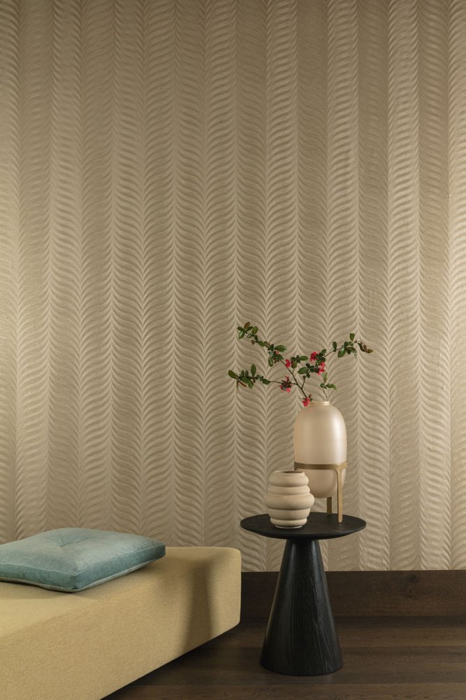 Elementum stands for simplicity, contemporary elegance and luxury. It brings together all the beautiful places that have inspired me during my travels: from the burnt landscapes of Morocco to the lush panoramas of India. The colors, textures and patterns of the wallpaper are inspired by the red glowing fire, the captivating ocean and the humid forests.