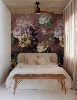 Floral non-woven mural wallpaper with a vinyl surface, hand-painted effect.