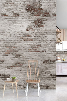 Non-woven wallpaper panel – design of a distressed brick wall.