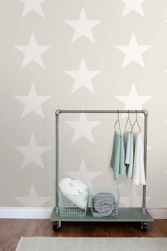 Beige non-woven wallpaper with white stars 136465, Regatta Crew, Esta Home