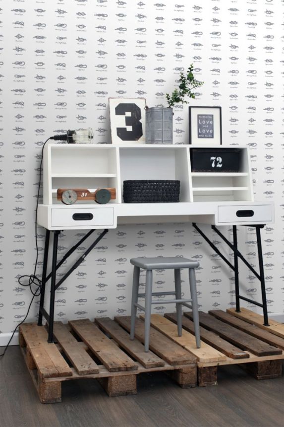 Non-woven white wallpaper, ropes, knots 136462, Regatta Crew, Esta Home