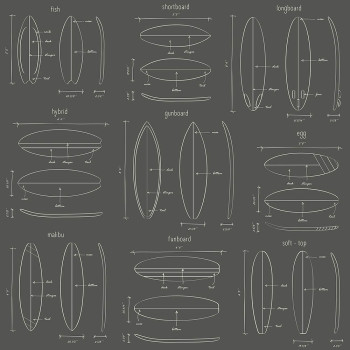 Black non-woven wallpaper with sketches of surfboards 128872, Regatta Crew, Esta Home