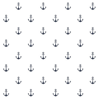 Non-woven white wallpaper, dark blue anchors.