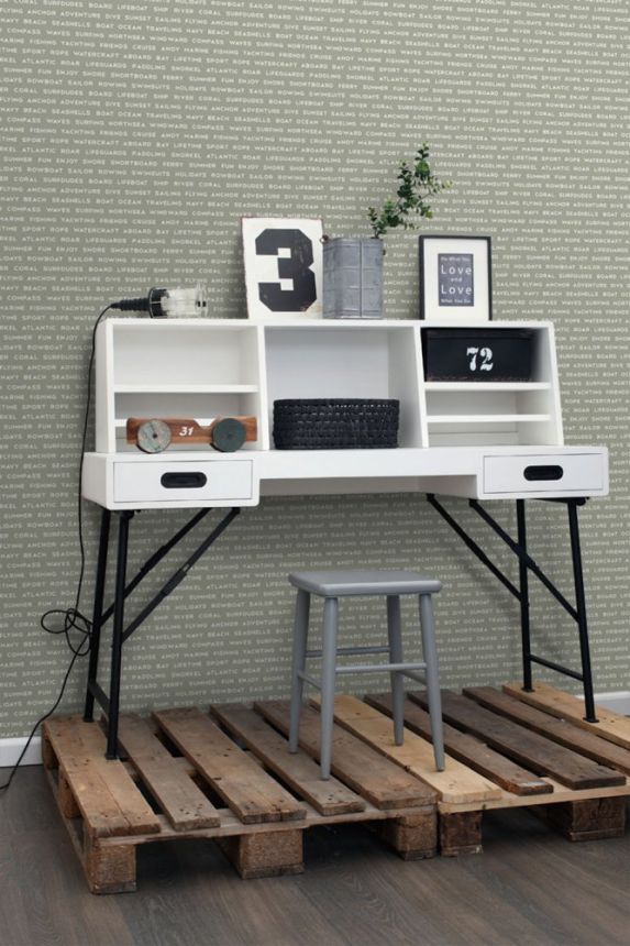 Teal non-woven wallpaper with texts 138959, Regatta Crew, Esta Home