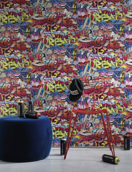 Good Vibes is a collection of wallpapers from he manufacturer Decoprint, created for trendy teenagers. It is a continuation of our popular "What's Up" collection. The Good Vibes collection features playful designs and special effects on the wallpaper, such as glow-in-the-dark inks, chalkboards and multiple murals.