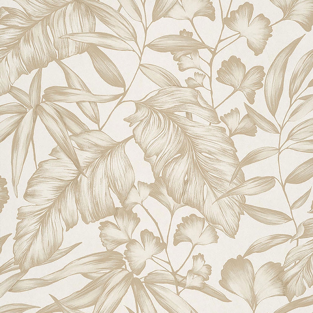 Experience a holiday in your own home. Biloba leaves will transform your living space into a tropical paradise. Bekasi botanical wallpaper is designed in various shades, from tropical bright blue to dark brown ground.