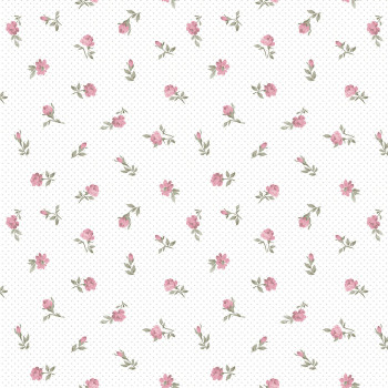Romantic floral wallpaper, small polka dot background, wallpaper has a fine fabric texture.