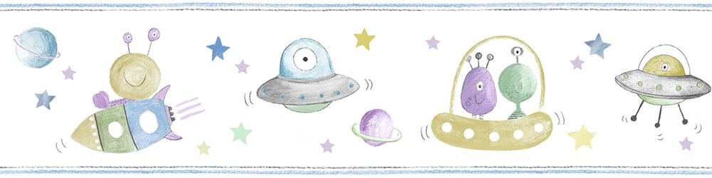 Wallpaper for boys - children's self-adhesive border with Martians.