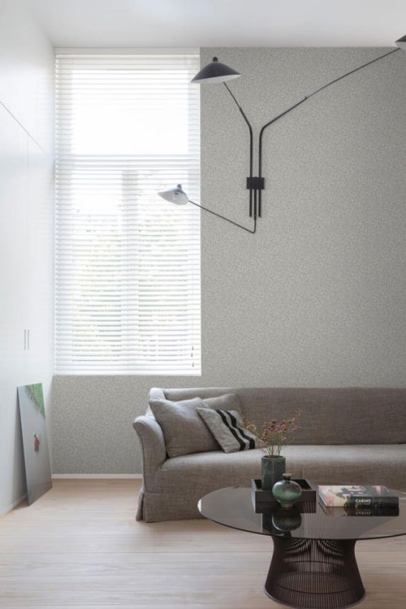 Finely embossed texture in gray shades, metallic golden-beige details.