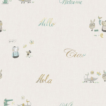 Paper children's wallpaper with animals and texts 3353-1, Oh lala, ICH Wallcoverings