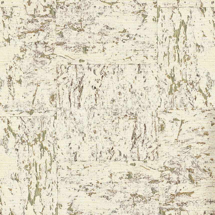 Natural cork wallpaper in shades of white / cream with a soft semi-gloss, golden backing paper in embossing.