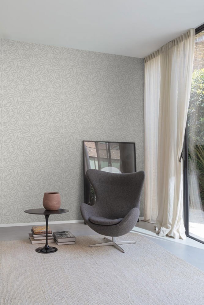 Inspired by nature - vertical stripes of natural fibers, gray-silver plant motif. Easily combine with related patterns.