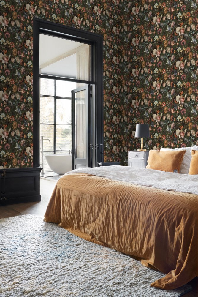 Non-woven romantic floral wallpaper with butterflies 139170, Paradise, Esta Home