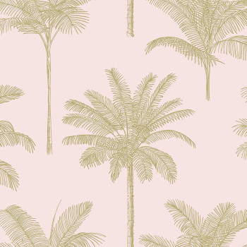 Non-woven pink wallpaper with golden palm trees 139164, Paradise, Esta Home