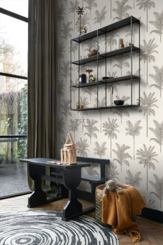 Non-woven beige wallpaper with palm trees 139163, Paradise, Esta Home