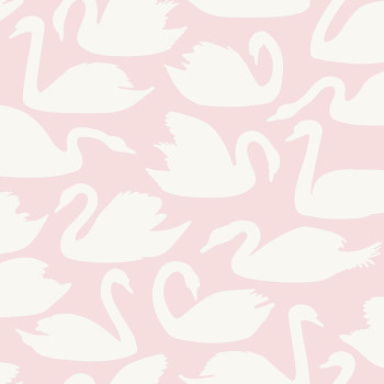 Non-woven metallic pink wallpaper, pearly shiny swans.
