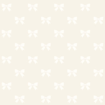 Children's non-woven wallpaper, white bows on a metallic cream background.