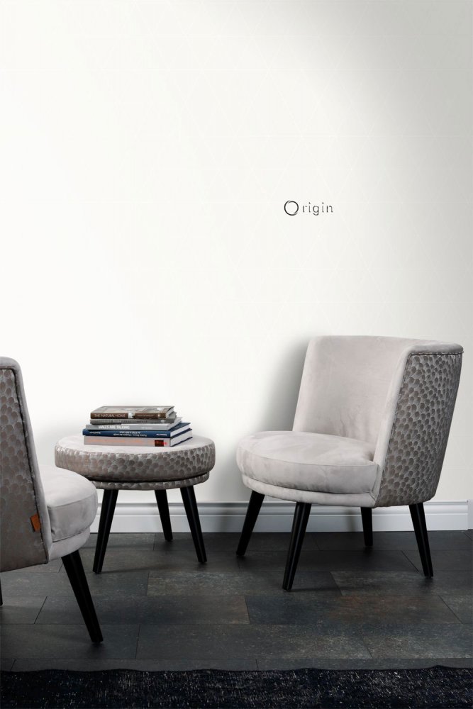Metallic creamy geometric pattern wallpaper, white outlines of triangles 347706, City Chic, Precious, Origin