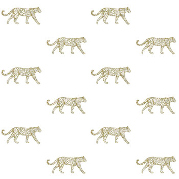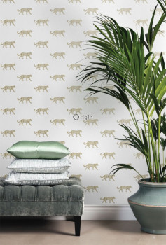 White non-woven wallpaper with golden leopards 347685, Precious, Origin