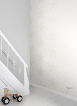 White non-woven wallpaper with beige stars 346824, Precious, Origin