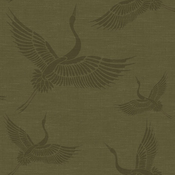 Non-woven green / khaki wallpaper - birds, cranes - fabric texture 347758, Natural Fabrics, Origin