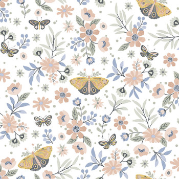 Non-woven floral wallpaper with butterflies M58103, My Kingdom, Ugépa