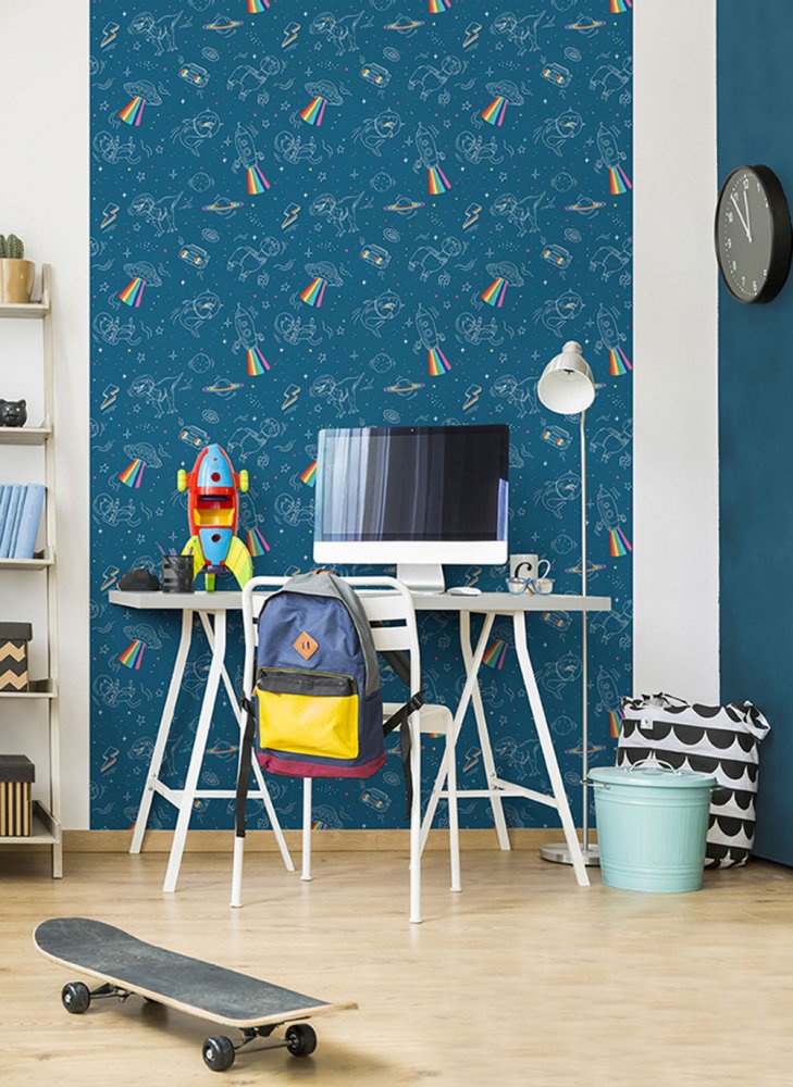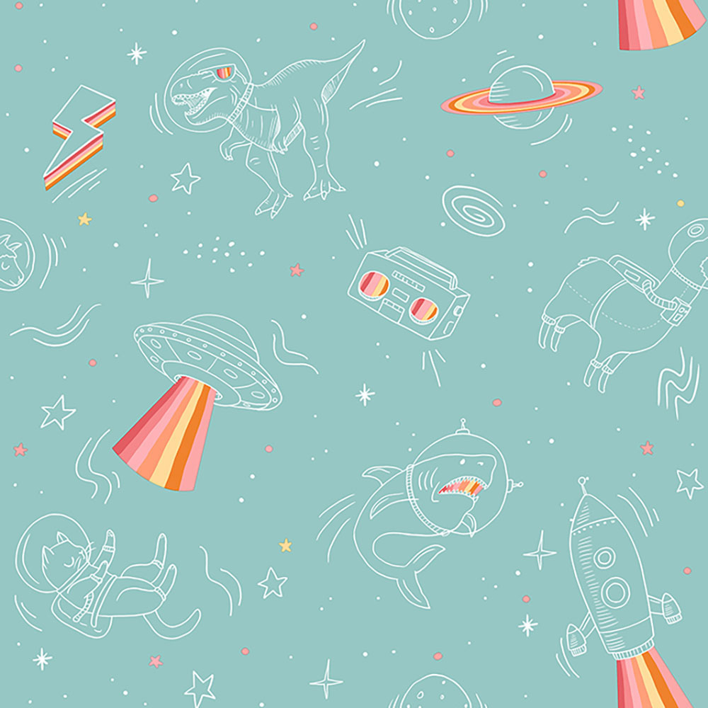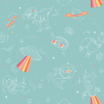 Non-woven children's wallpaper - dinosaurs and animals in space.