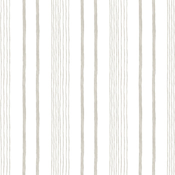 Non-woven white wallpaper with gray-beige stripes.