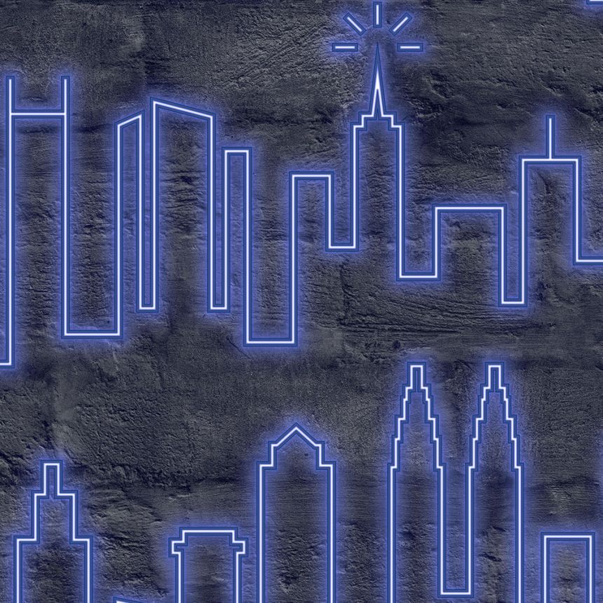 Neon wallpaper - outlines of New York buildings made of blue glitters glowing in the dark.