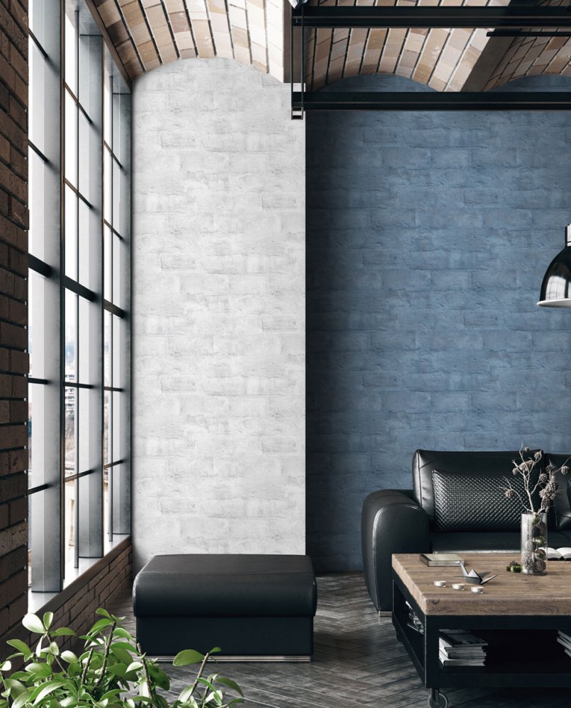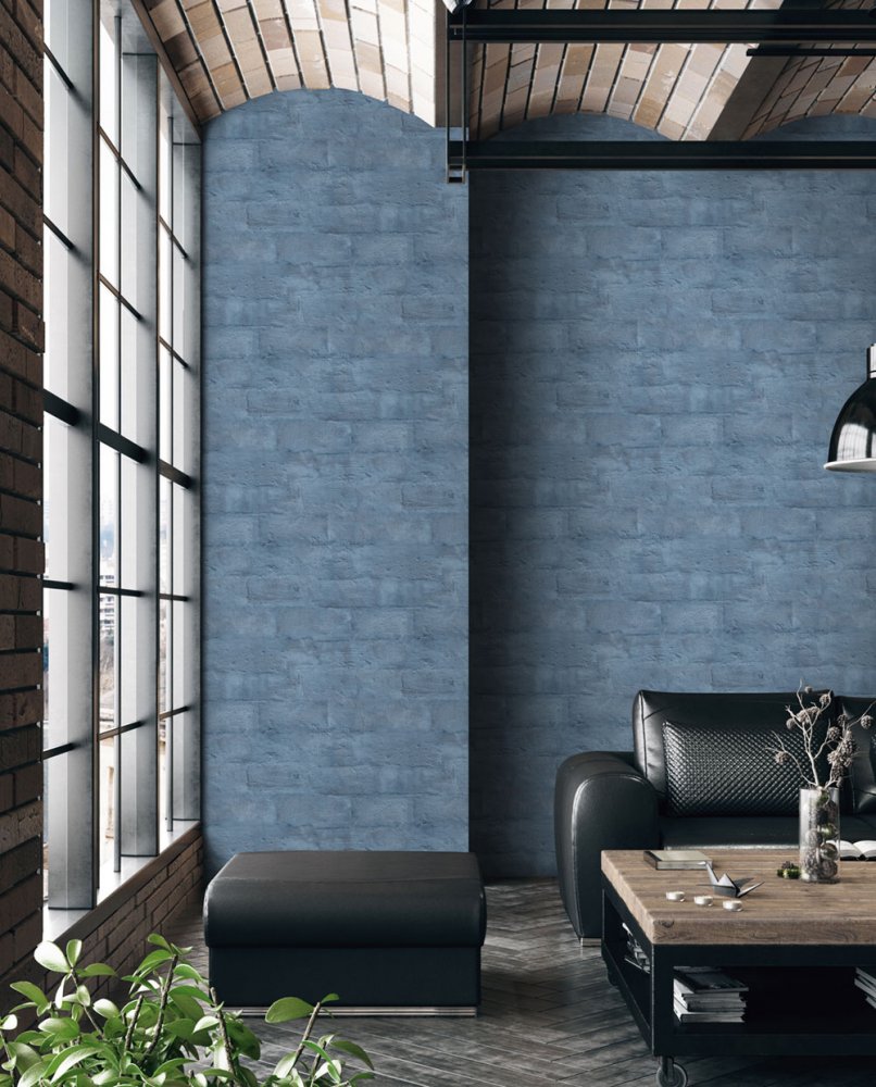 Non-woven washable wallpaper, blue brick decor, brick wall.